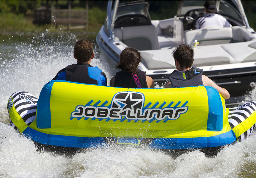 Взять на буксир - три человек Струя воздуха JOBE и JOBE лунный уже доступны.Поездка на Трубе-рекреация,где несколько человек,может кататься на воде.